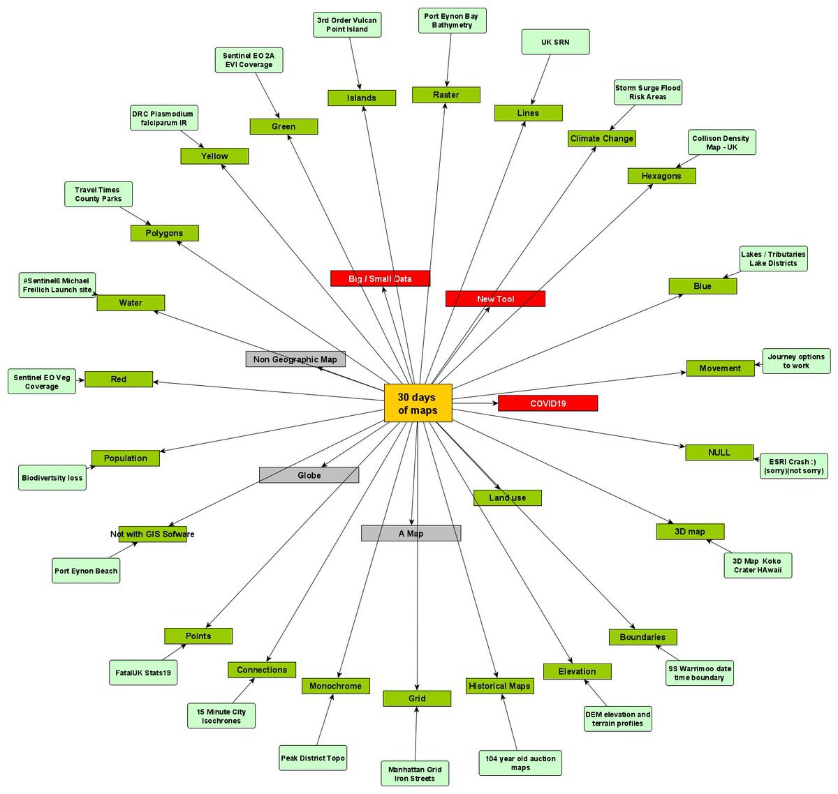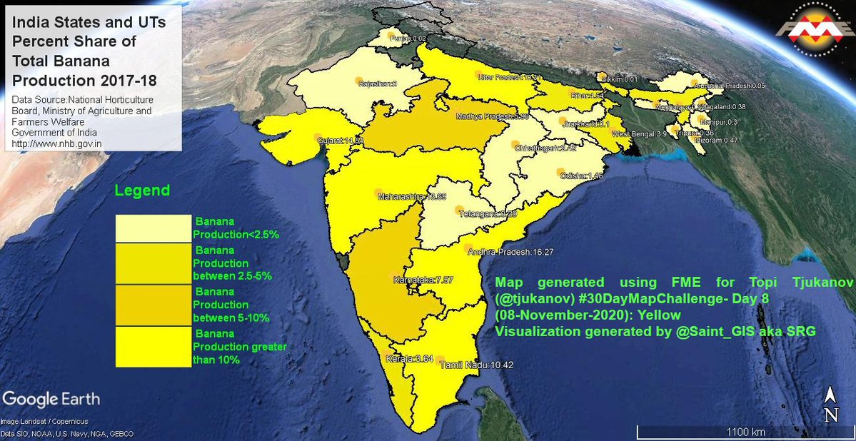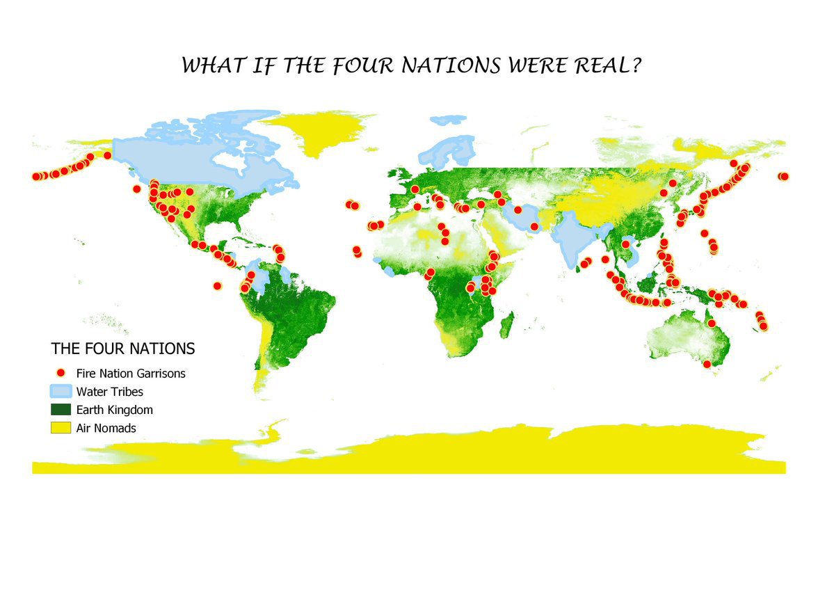 Ok #30DayMapChallenge you said Blue, Red, Green and Yellow and I thought of the Four Nations. So here's my GIS flavoured Avatar fan art of the Four Nations using real data. Red / Fire - global volcanoes (minus a few), Green / Earth - global NDVI, Yellow / Air - global elevation above 1000m, Blue / Water - countries with highest water coverage as a % of area and those with most fresh water per capita.